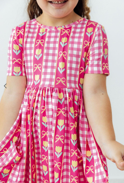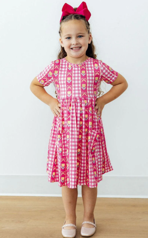 The perfect dress for school, special occasions, and everyday play! Designed by a mom and a dad. Mom wanted something twirly, comfortable and easy to wash. Dad wanted something easy to get on his chubby, big headed toddler. Designed with a scoop back for quick on and off, and higher neckline for modesty.